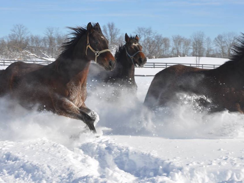 Our nutritional program is designed to raise the soundest, strongest, horses possible. Pastures are all spacious, rounded and fenced with new oak boards. Hay is a homegrown alfalfa and clover/timothy harvested from fields that are soil tested and fertilized annually. Our staff is experienced and dedicated, allowing us to offer our clients a full range of services; including boarding, breeding, foaling, breaking, training, racing partnerships, pedigree analysis, stallion syndication, and accounting and tax consultation.